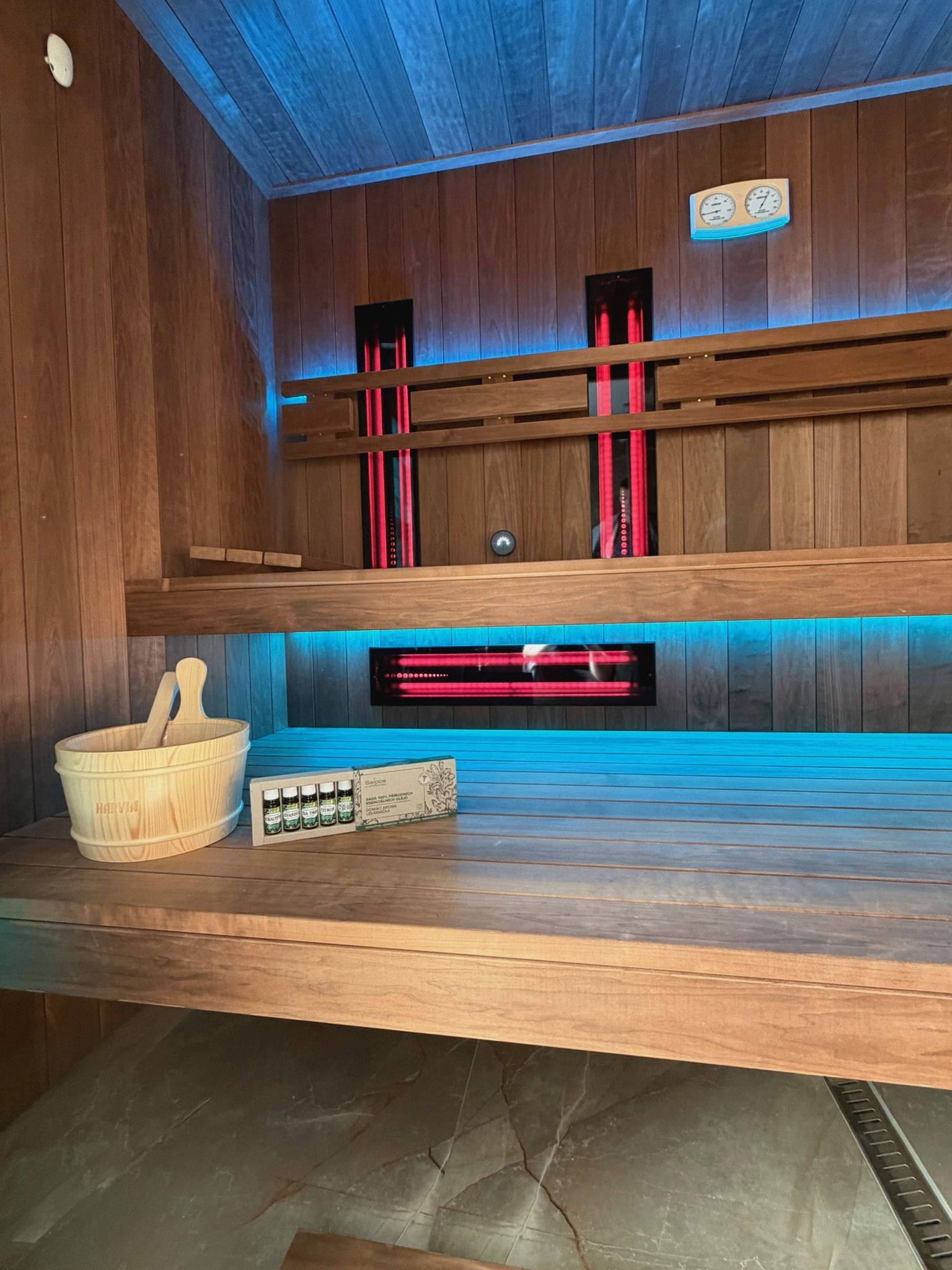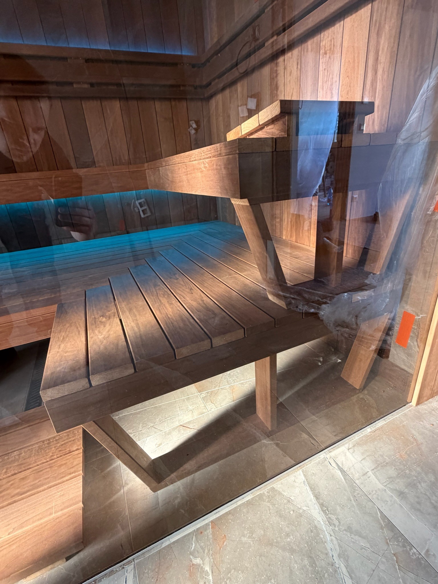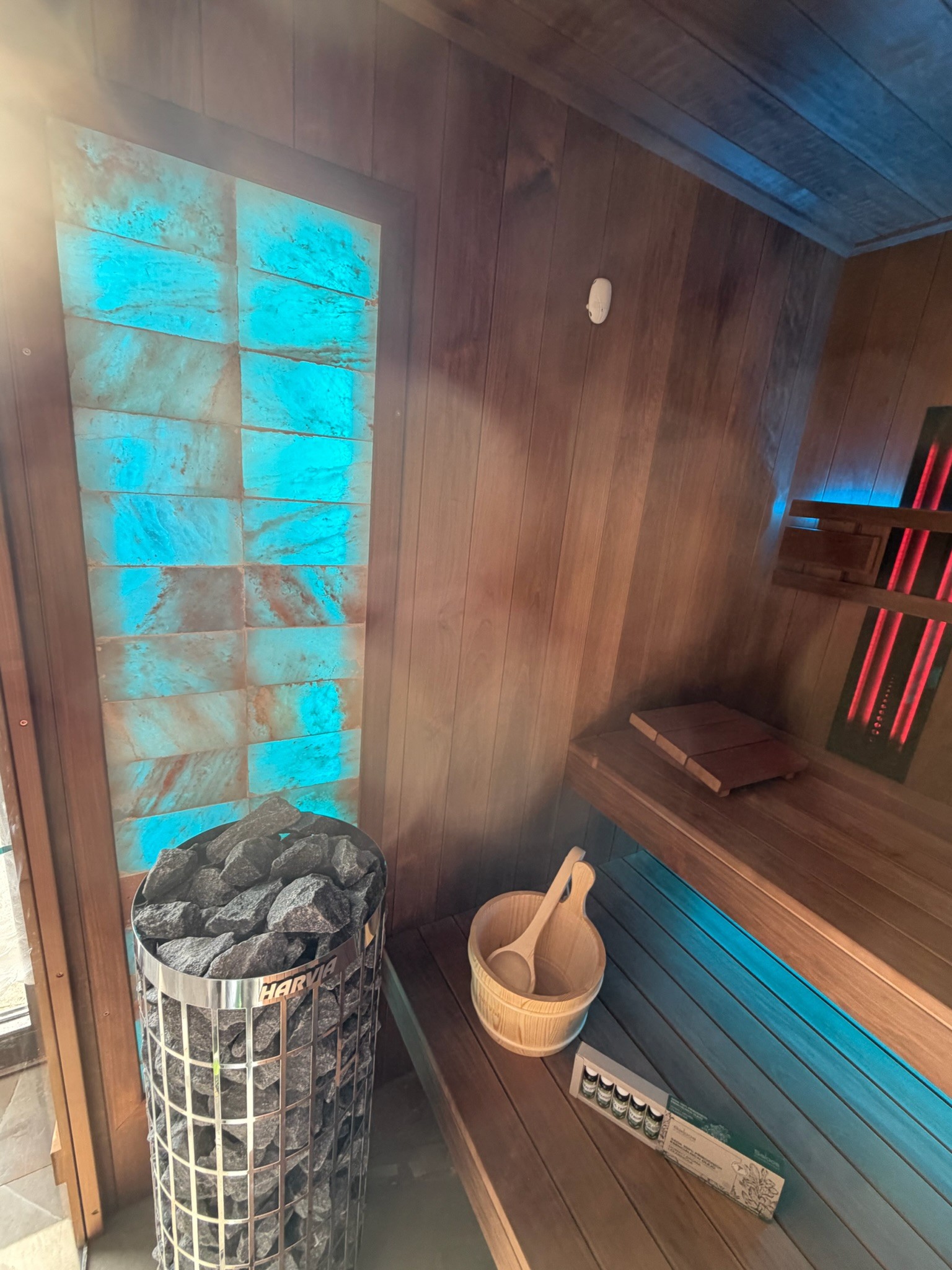 - Presklenna stena -3 okruhy LED pasu, lavica, opierka, soľná stena