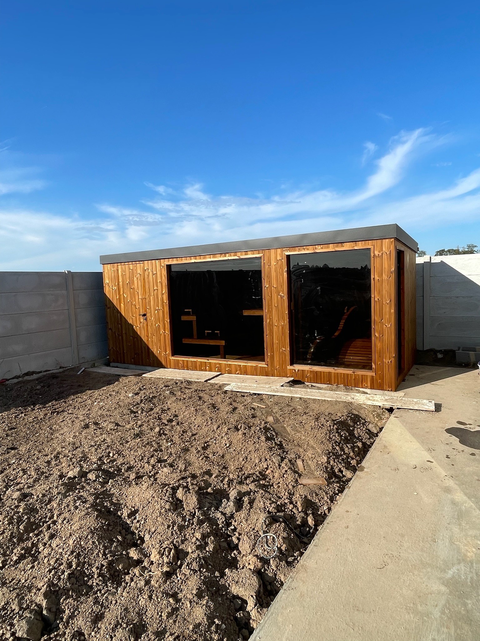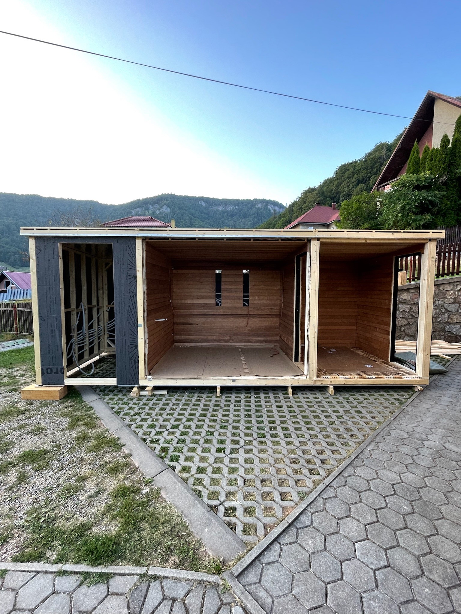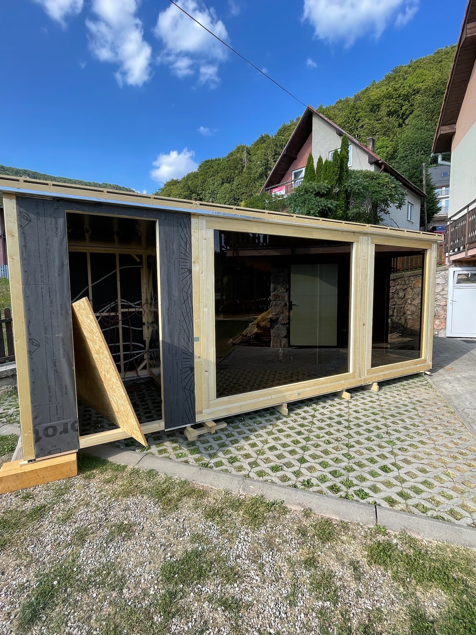 Materiál: interiér – termoosika, exteriér – termoborovica s oplechovaním Clip Panel