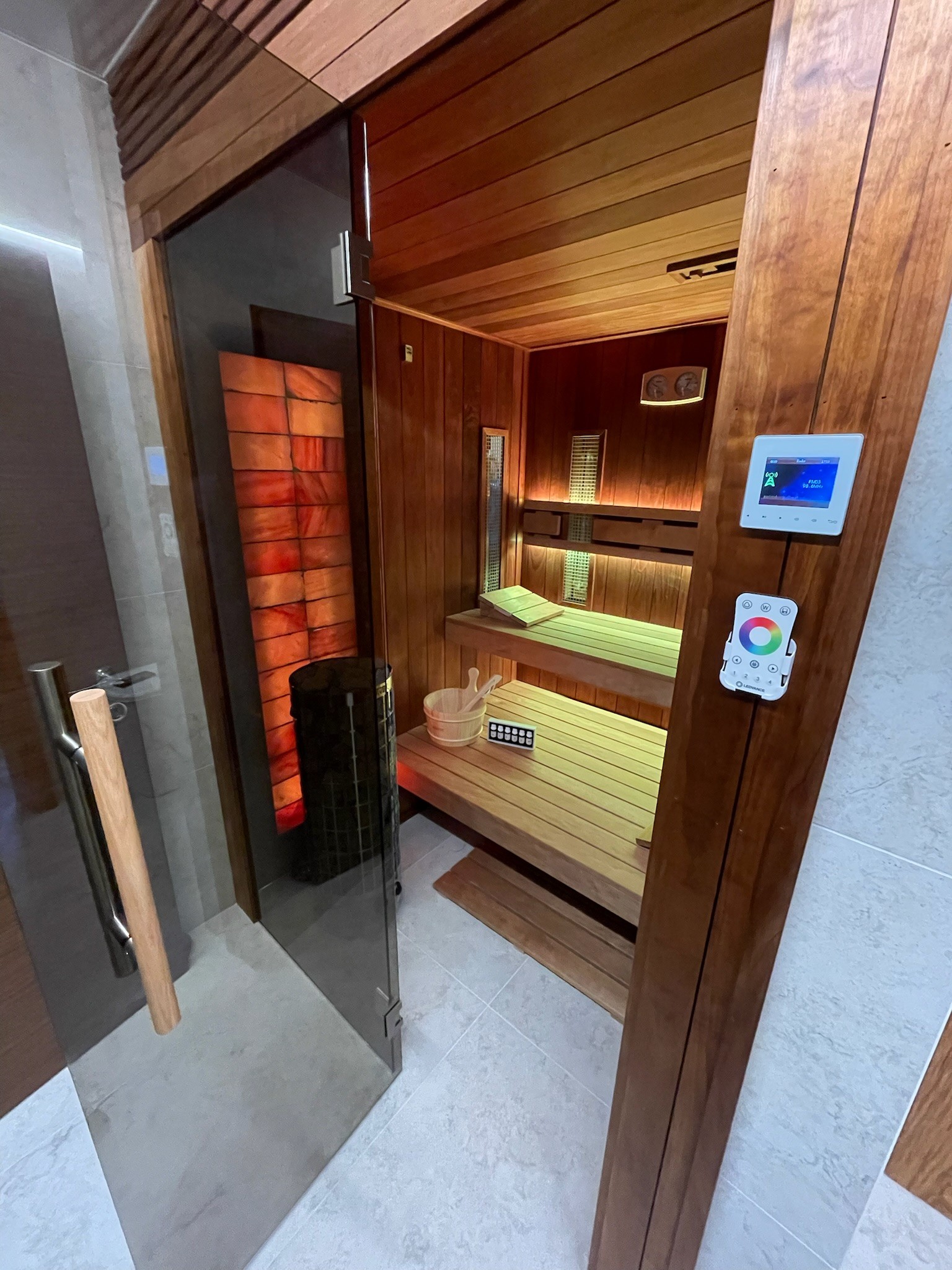 3 okruhy LED osvetlenia (lavice, opierky, soľná stena)