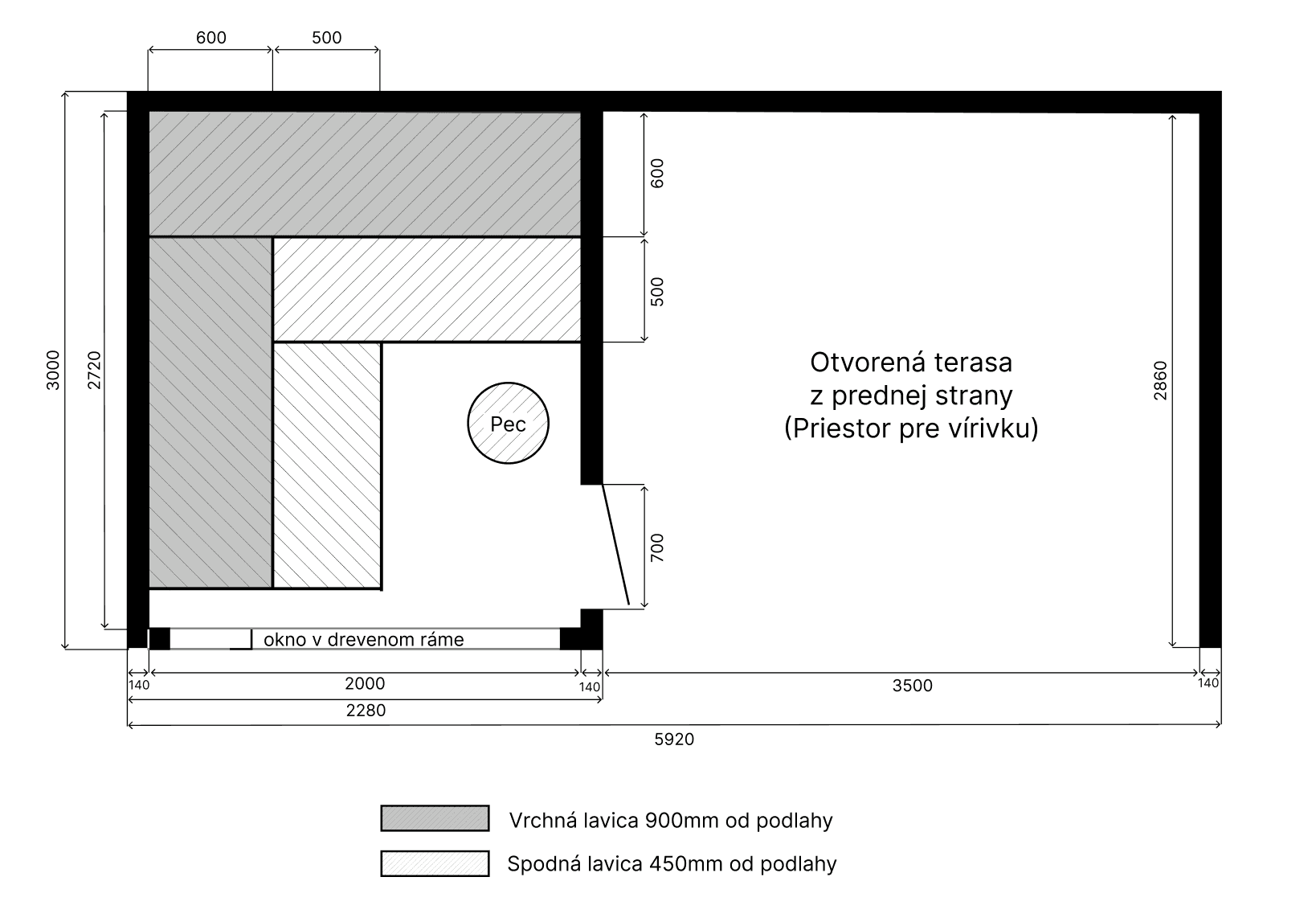 • Podlahová konštrukcia terasy bez pozinkovaného plechu, položená na terčoch (záleží od roviny podkladu)